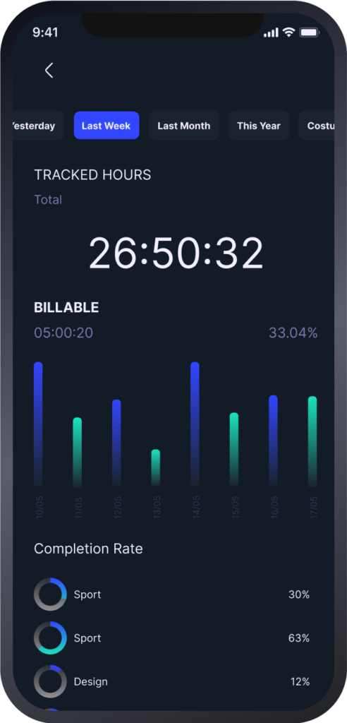 Online & offline it allows you to see how your or your team’s time is spent. Smart alerts and notifications will keep you tuned in to ensure you record every minute.